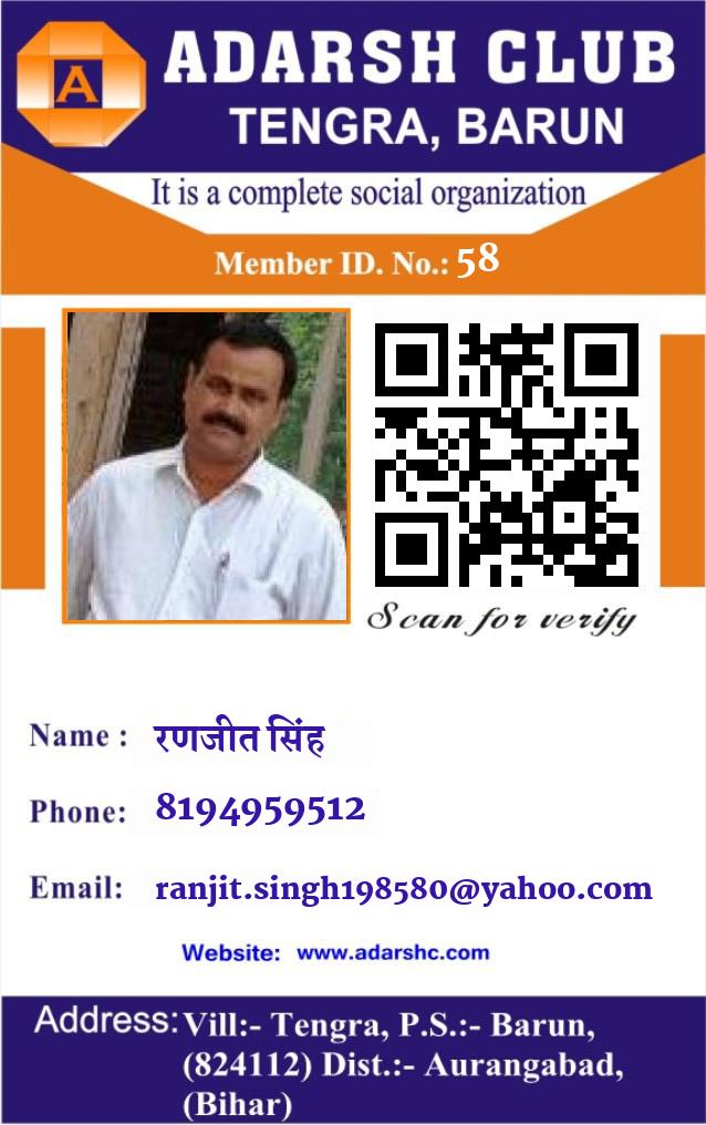 😀 रणजीत सिंह 👉 ADARSH CLUB का सदस्य है!
